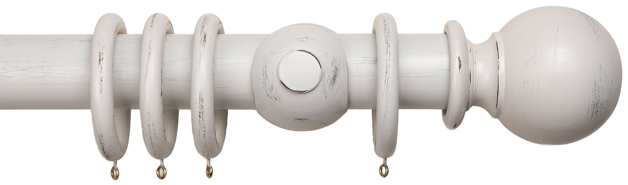 Advent Designs 40mm and 48mm Traditional Wood Curtain Pole in Distressed Cornish Mist with Ball finials, a beautiful wood curtain pole finished in a more traditional colour. To enable Advent to obtain such a high class finish, they have deliberately elected not to use the normal, tinted cellulose based lacquers. Instead, they favour the time honoured, traditional method of finishing wood by French Polishing. Advent have deliberately chosen to focus on a carefully selected number of designs and finishes, all taken from the well respected 'Advent Collection'. Advent curtain poles are Hardwood and hand crafted in the UK by a leading designer and manufacturer in this field, at a price that represents superb value for money.