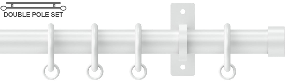 Arc 25mm Metal Double Curtain Pole in China White with Stud finials. The Arc curtain pole range is a versatile painted metal curtain pole range that is available in an array of colours to suit many modern and traditional interiors. Hang your sheers or voiles from the same fixing as your curtains using a double pole to create a layered window dressing.
