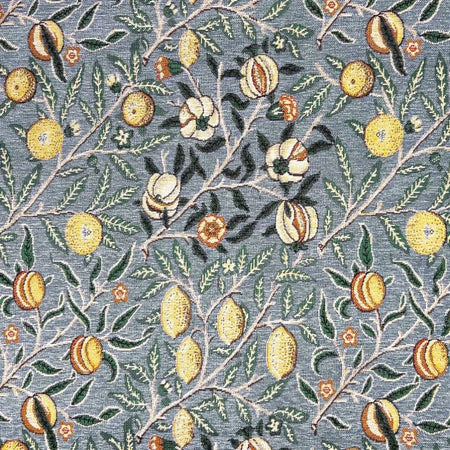 Chatham Glyn William Morris Chenilles Pomegranate Azure Fabric. Pomegranate is a chenille fabric with a fruity design.