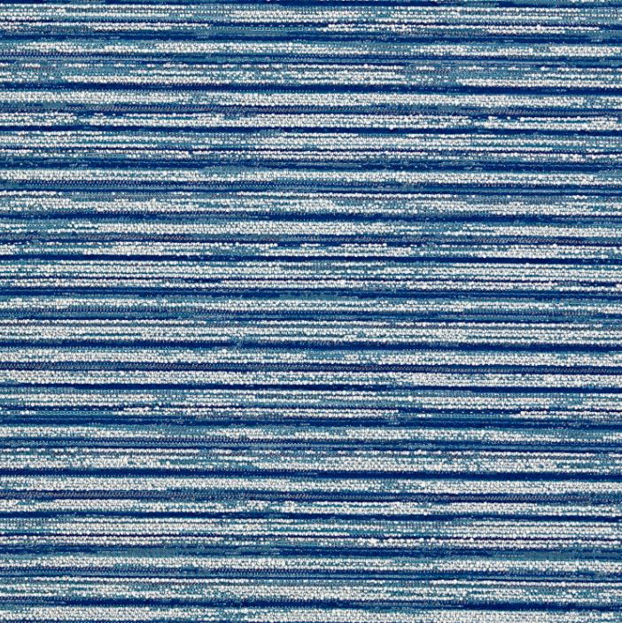 Clarke & Clarke Alfresco Waikiki Cobalt Fabric. Featuring a playful variation of textural yarns creating a horizontal effect, Waikiki has a tactile, artisanal look that feels like a chunky jacquard.