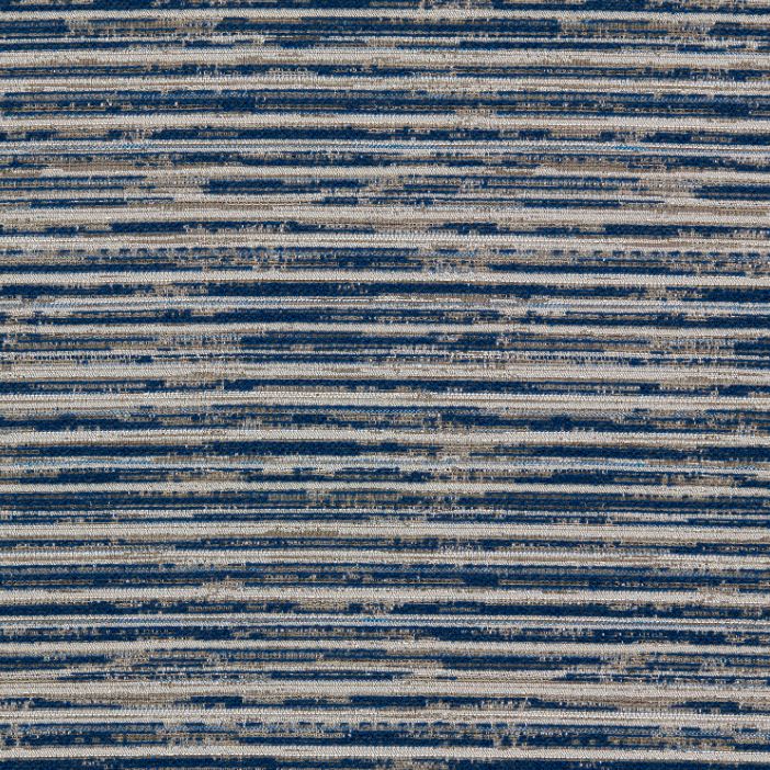 Clarke & Clarke Alfresco Waikiki Midnight Fabric. Featuring a playful variation of textural yarns creating a horizontal effect, Waikiki has a tactile, artisanal look that feels like a chunky jacquard.
