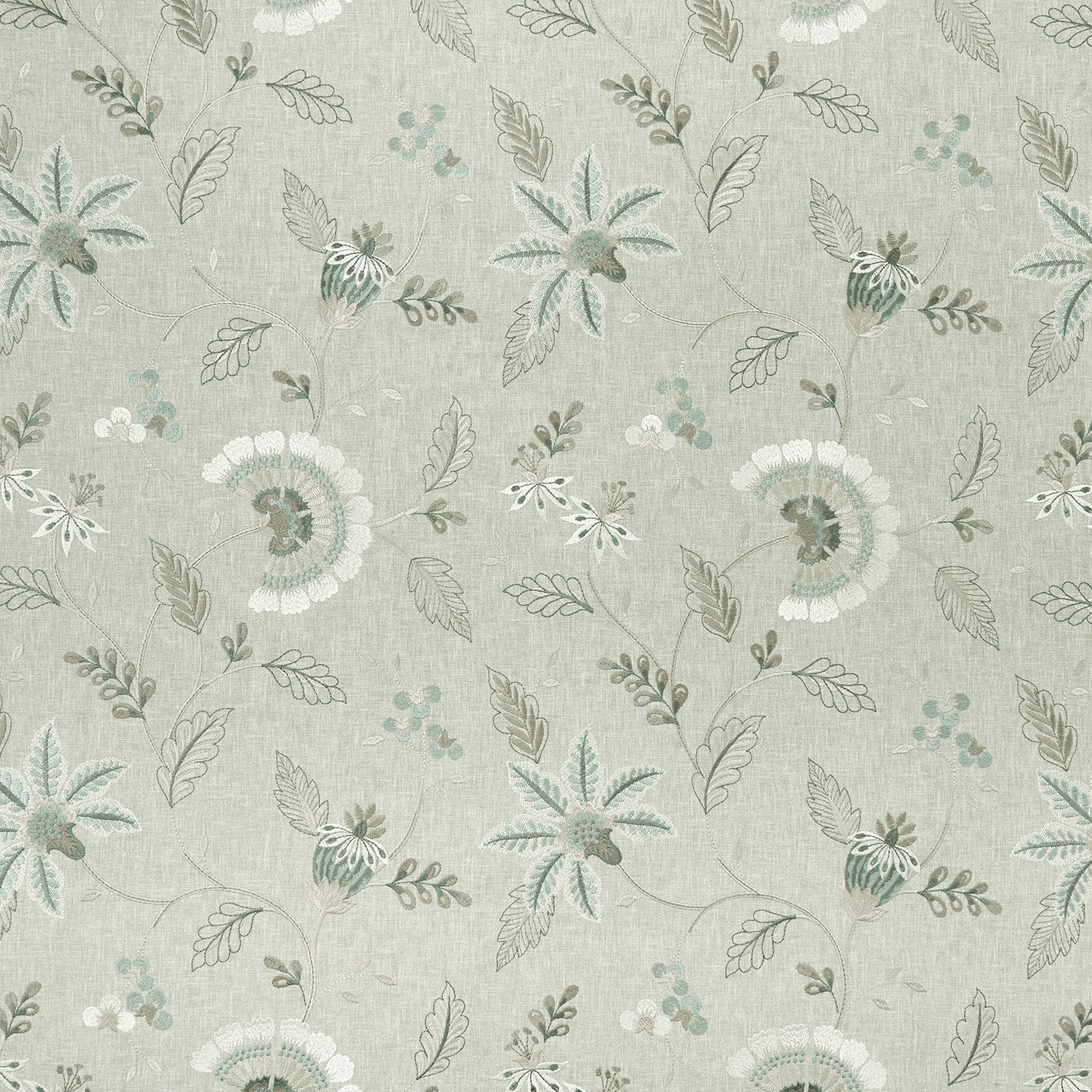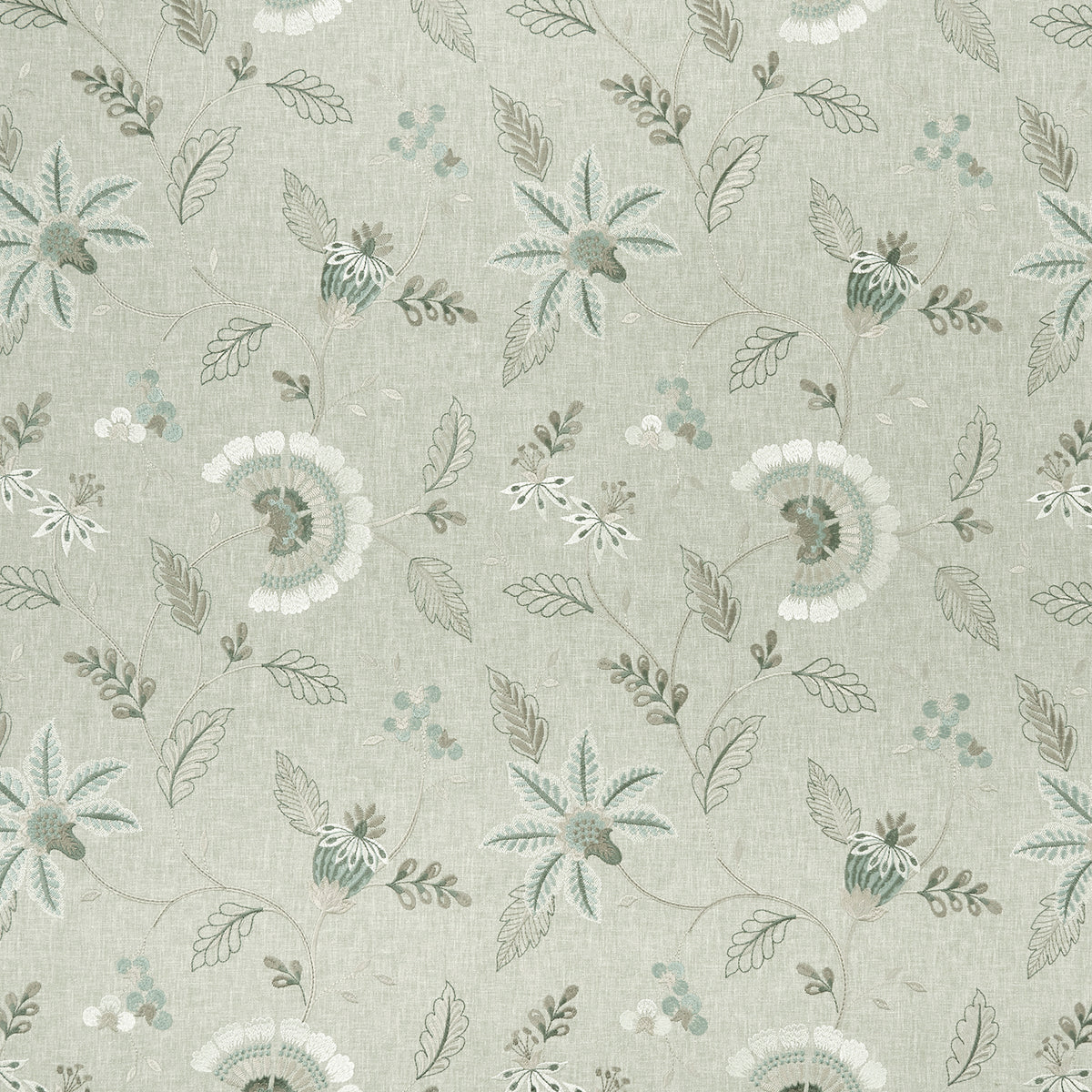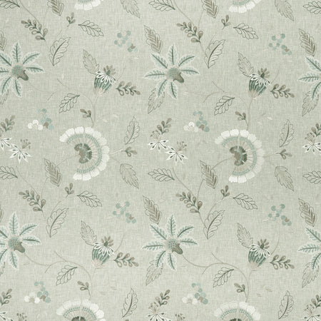 Clarke & Clarke Halcyon Delamere Fabric in Duckegg Colourway. Delamere is an embroidered fabric with a paisley design.