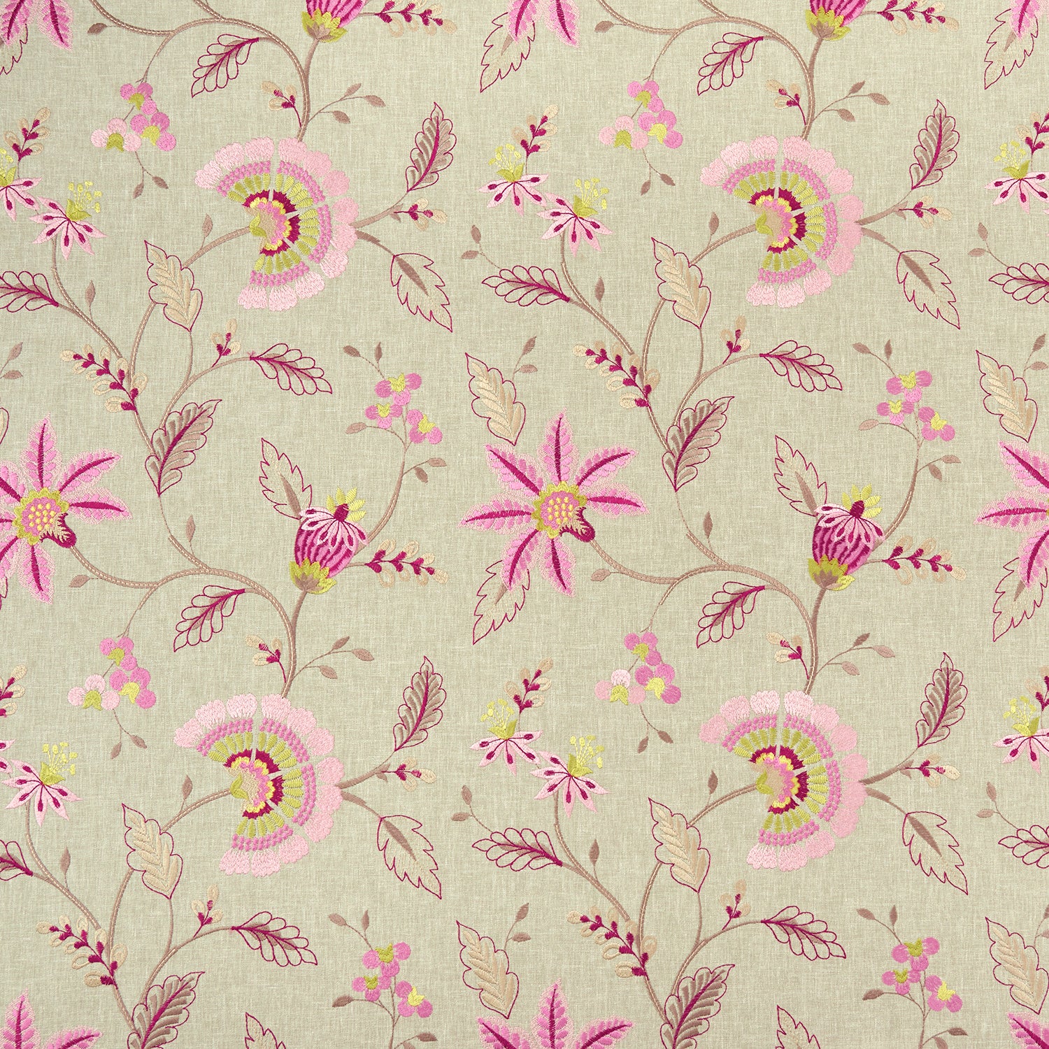 Clarke & Clarke Halcyon Delamere Fabric in Raspberry Colourway. Delamere is an embroidered fabric with a paisley design.