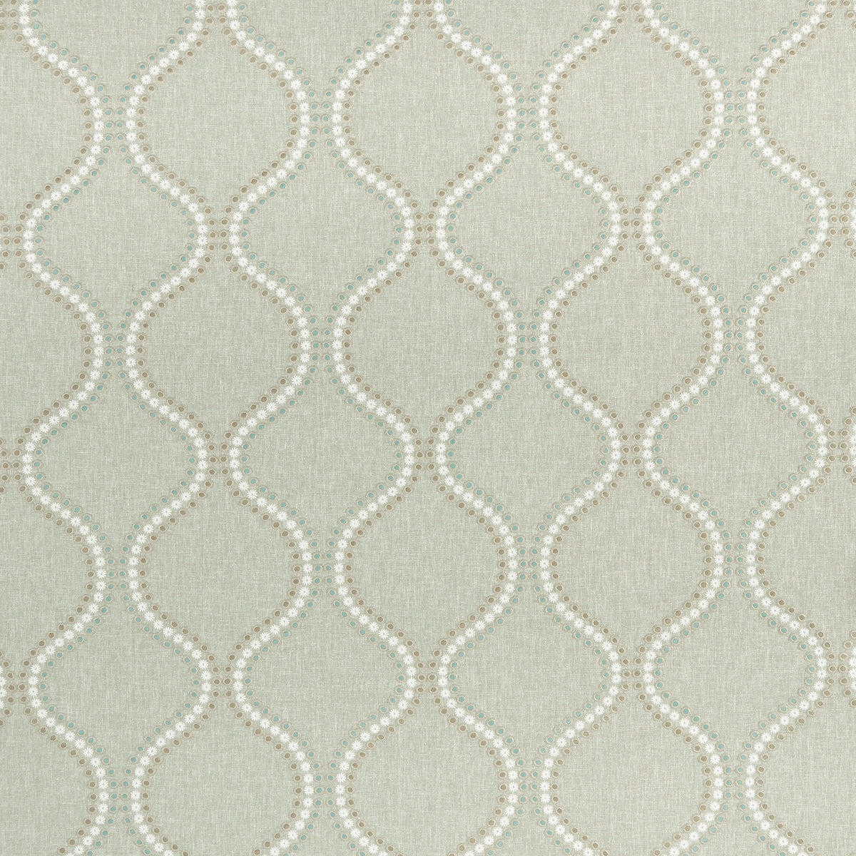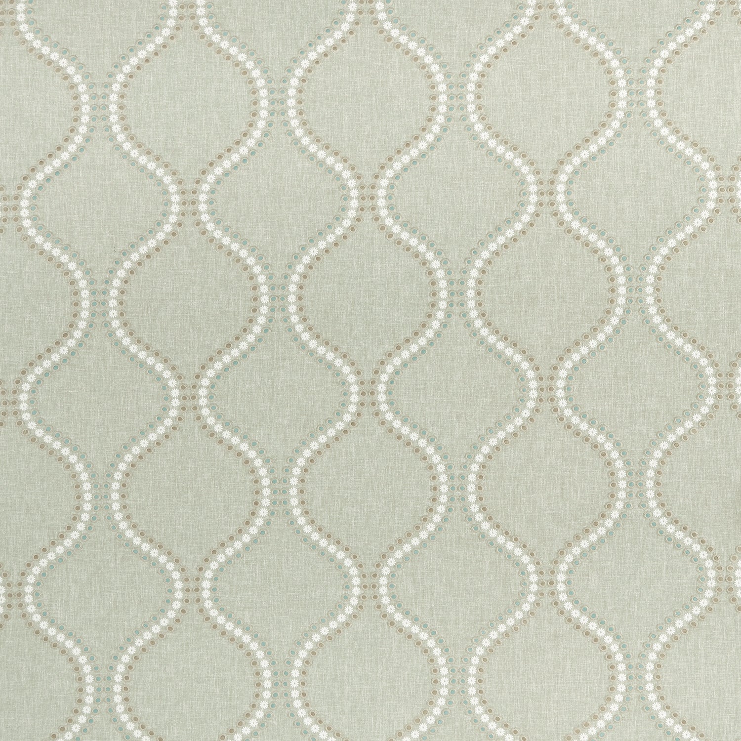 Clarke & Clarke Halcyon Layton Fabric in Duckegg Colourway. Layton is an embroidered fabric with a wavy trail design.