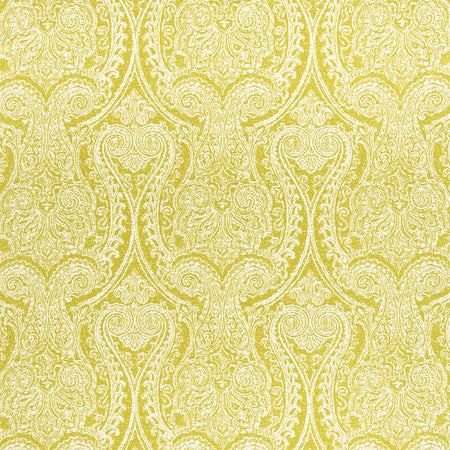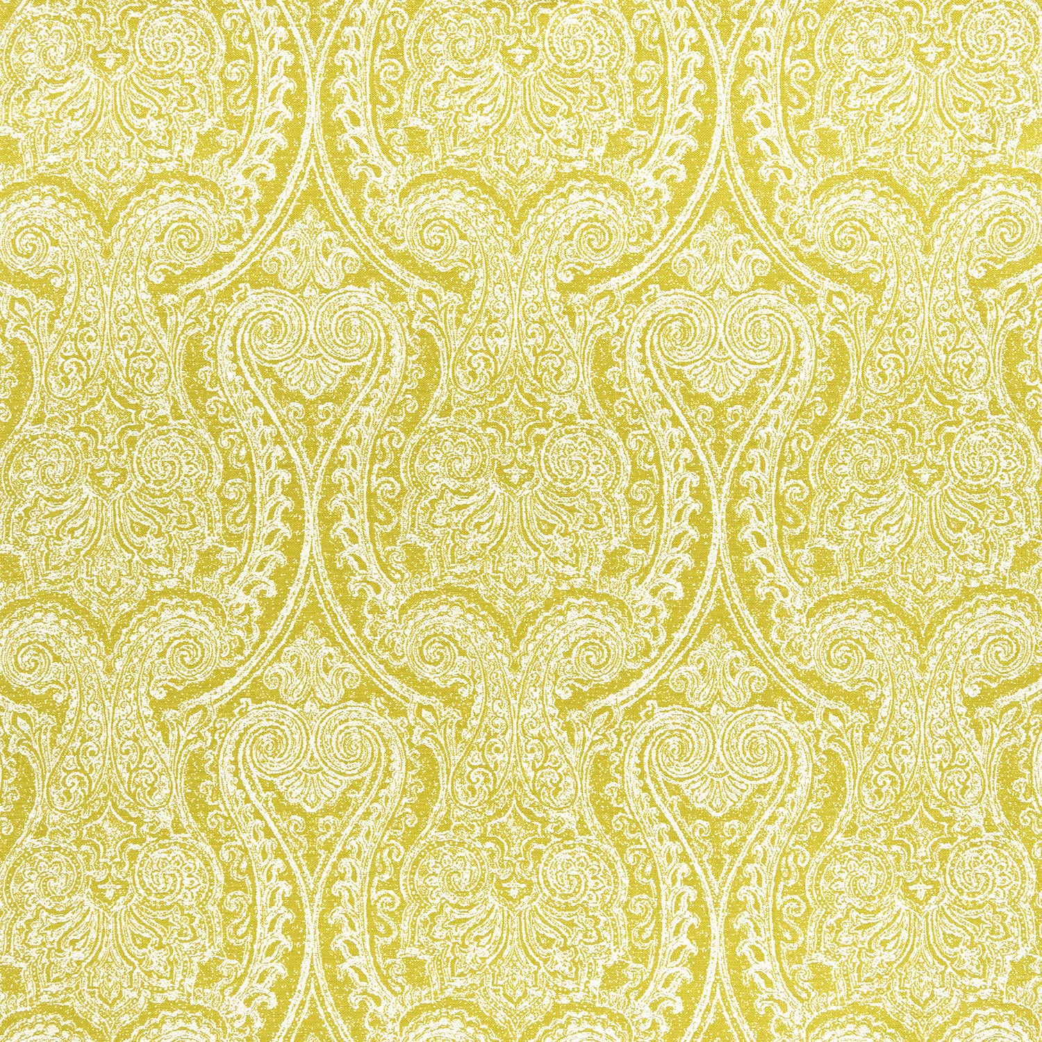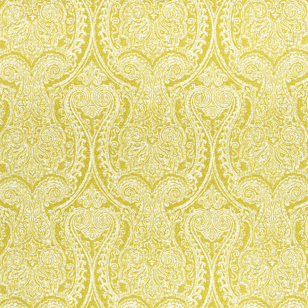 Clarke & Clarke Halcyon Pastiche Fabric in Chartreuse Colourway. Pastiche is a woven fabric with a paisley design.