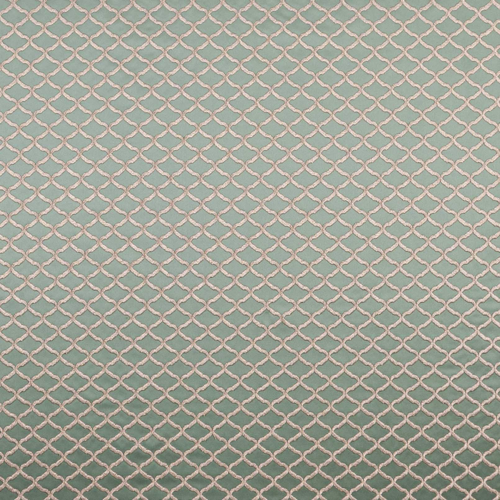 Clarke & Clarke Imperiale Reggio Fabric in Mineral Colourway. Reggio is an embroidered fabric with a small geometric design.