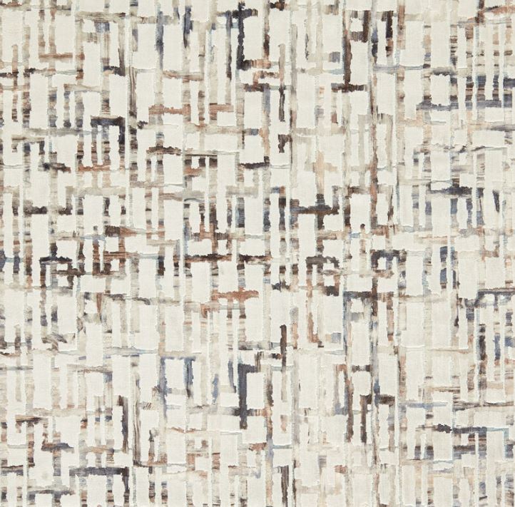 Clarke & Clarke Vivido Quadrata Ivory Fabric. With raised, velvet detail contrasting against a woven, gently textured ground, Quadrata is hand painted with contrasting brush strokes to create an architecturally inspired layered geometric fabric.
