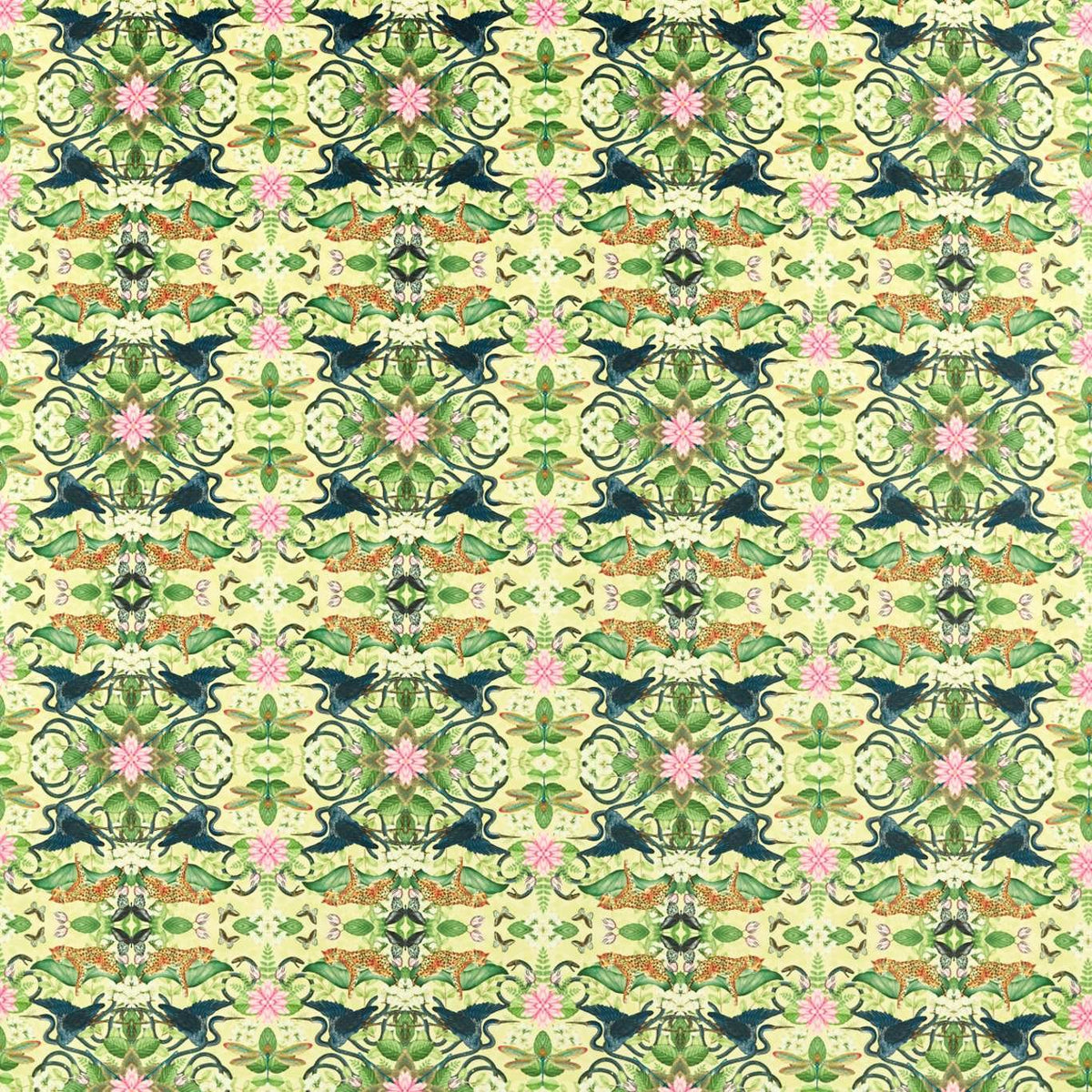 Celebrating the world's most unusual flora and fauna, this bold, kaleidoscopic pattern encounters butterflies, birds, leopards and snakes hidden amongst unexpected patterns. It is bursting with life and brimming with secrets.