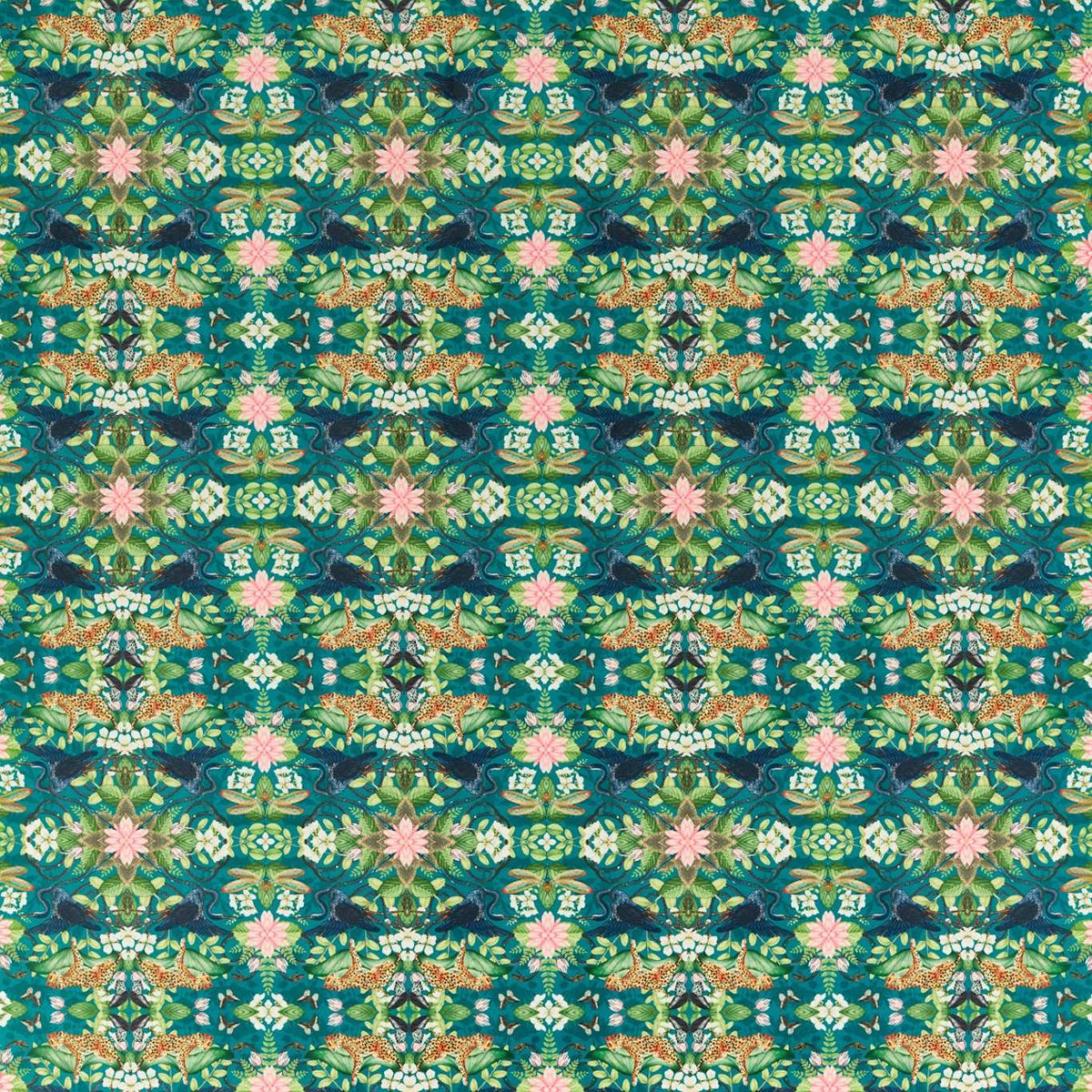 Celebrating the world's most unusual flora and fauna, this bold, kaleidoscopic pattern encounters butterflies, birds, leopards and snakes hidden amongst unexpected patterns. It is bursting with life and brimming with secrets.