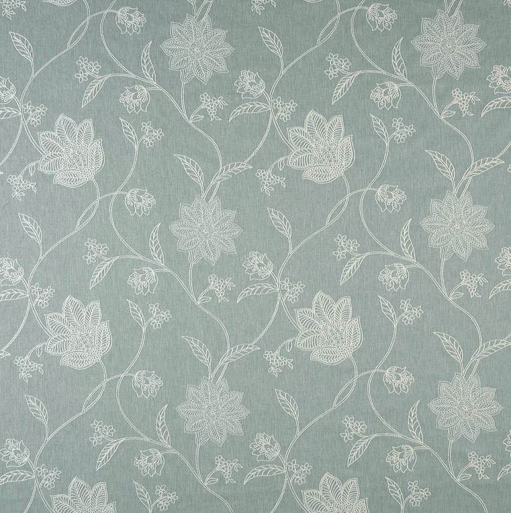 Fibre Naturelle Bali Biru Fabric. Bali is a delicately embroidered fabric with a floral trail design.