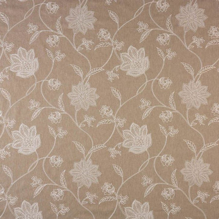 Fibre Naturelle Bali Coklat Fabric. Bali is a delicately embroidered fabric with a floral trail design.