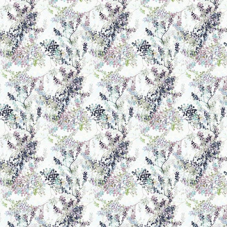 Fibre Naturelle Camille Damson Fabric. Camille is a printed fabric with a floral design.