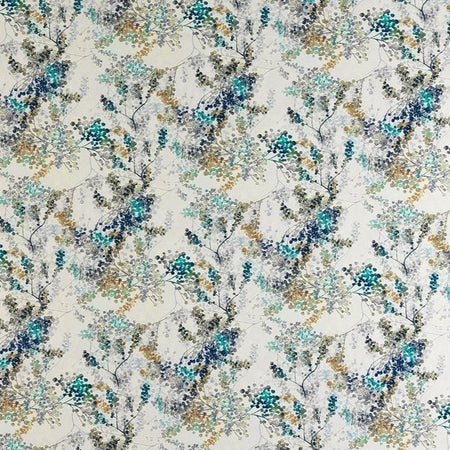 Fibre Naturelle Camille Pervenche Fabric. Camille is a printed fabric with a floral design.