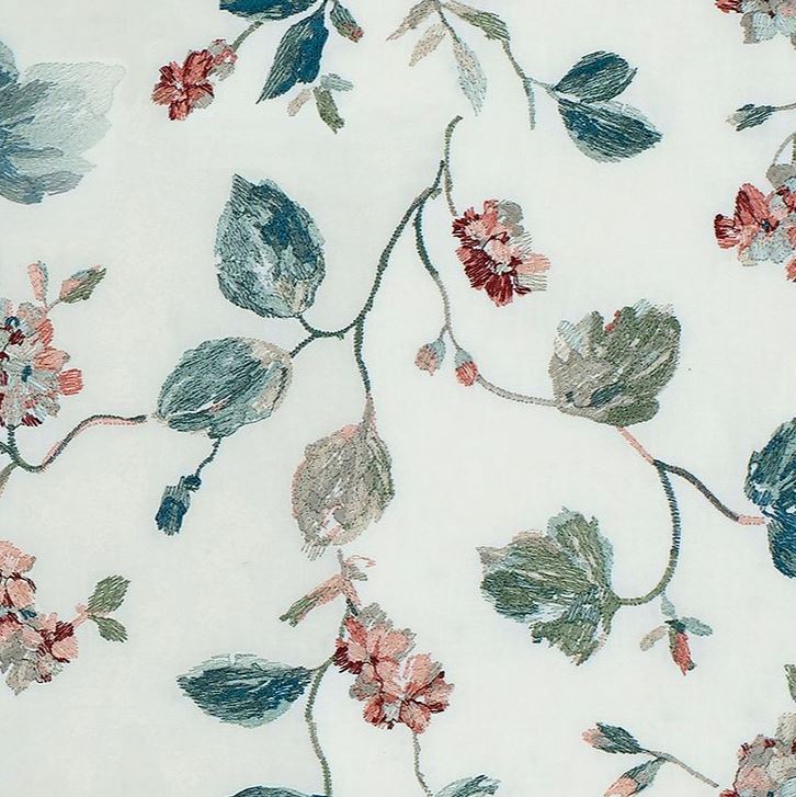 Fibre Naturelle Cranborne Chintz Fabric. Cranborne is an embroidered cotton blend with a floral design.
