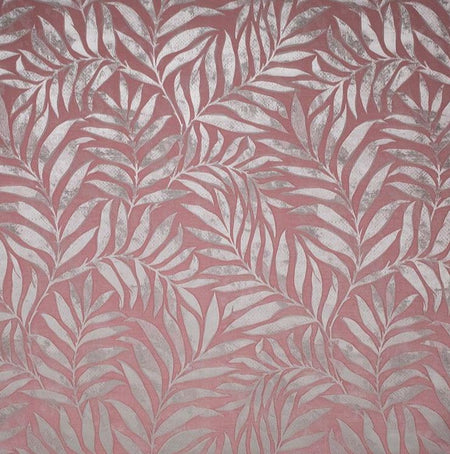 Fibre Naturelle Ella Dusky Pink Fabric. Ella is a metallic woven jacquard with a leaf trellis design.