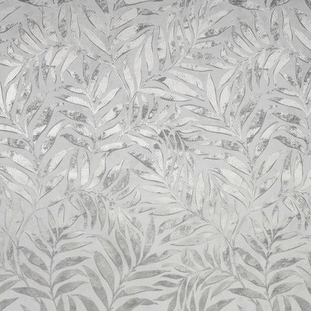Fibre Naturelle Ella Oyster Fabric. Ella is a metallic woven jacquard with a leaf trellis design.