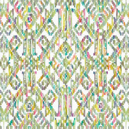 Fibre Naturelle Marrakesh Apple Fabric. Marrakesh is a printed fabric with a vibrant ikat design.