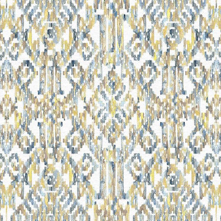 Fibre Naturelle Marrakesh Ochre Fabric. Marrakesh is a printed fabric with a vibrant ikat design.
