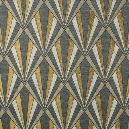 Fibre Naturelle Vogue Polished Brass Fabric. Vogue is a jacquard fabric with an art deco geometric design.