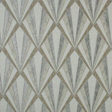 Fibre Naturelle Vogue Satin Chrome Fabric. Vogue is a jacquard fabric with an art deco geometric design.