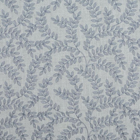 Fibre Naturelle Wisley Indigo Fabric. Wisley is an embroidered fabric with a delicate leaf trellis design.
