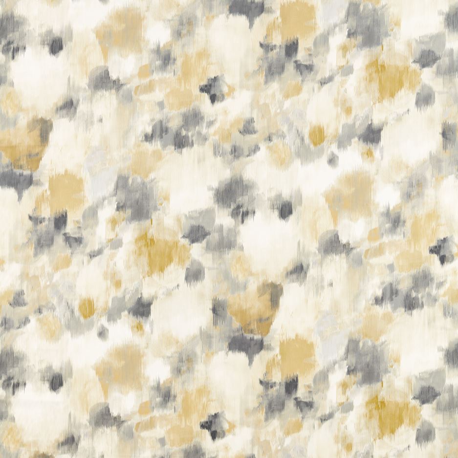 Harlequin Atelier Exuberance Ochre/Charcoal Fabric. Inspired by the successful wallpaper of the same name, Exuberance from Harlequin is an abstract floral originally designs on corrugated paper to create a lined look. Exuberance is printed on a luxurious satin and displays a wonderful high sheen.