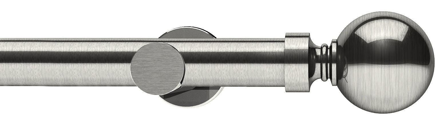 Integra Elements Belgravia 28mm Eyelet Metal Curtain Pole in a Satin Steel finish with contemporary Belgravia ball finials, for use with eyelet or tab top curtains.