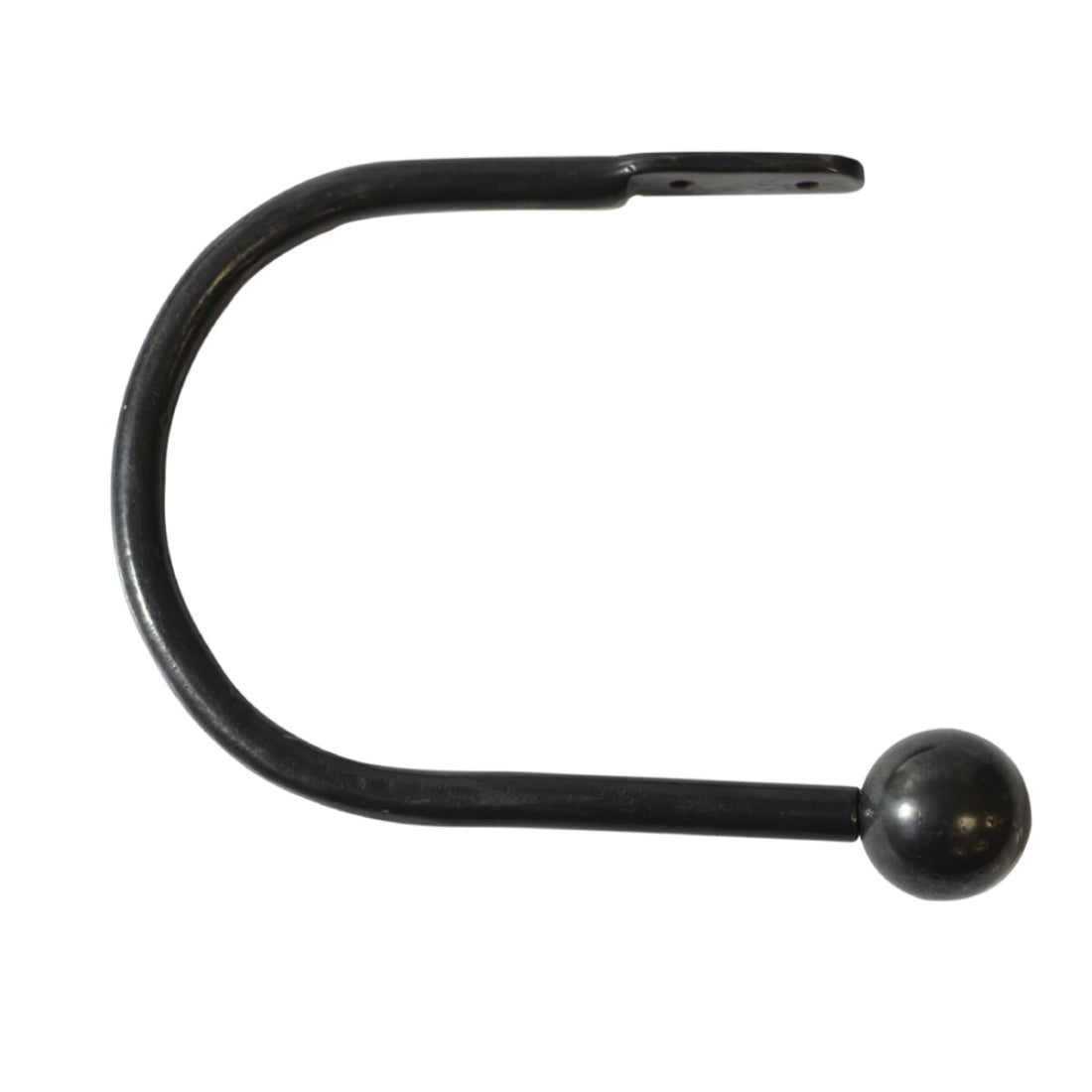 Jones Foundry 19mm Ball Holdback, Beeswax. 19mm forged iron poles that are elegantly finished in textured black and beeswax to enhance traditional and contemporary spaces.