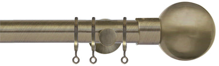 Jones Lunar Metal Curtain Pole 28mm in a Burnished Brass finish with Sphere Ball finials. The Jones Lunar curtain poles are an ultra contemporary curtain pole set that adds ultimate style and finesse to any modern decor.