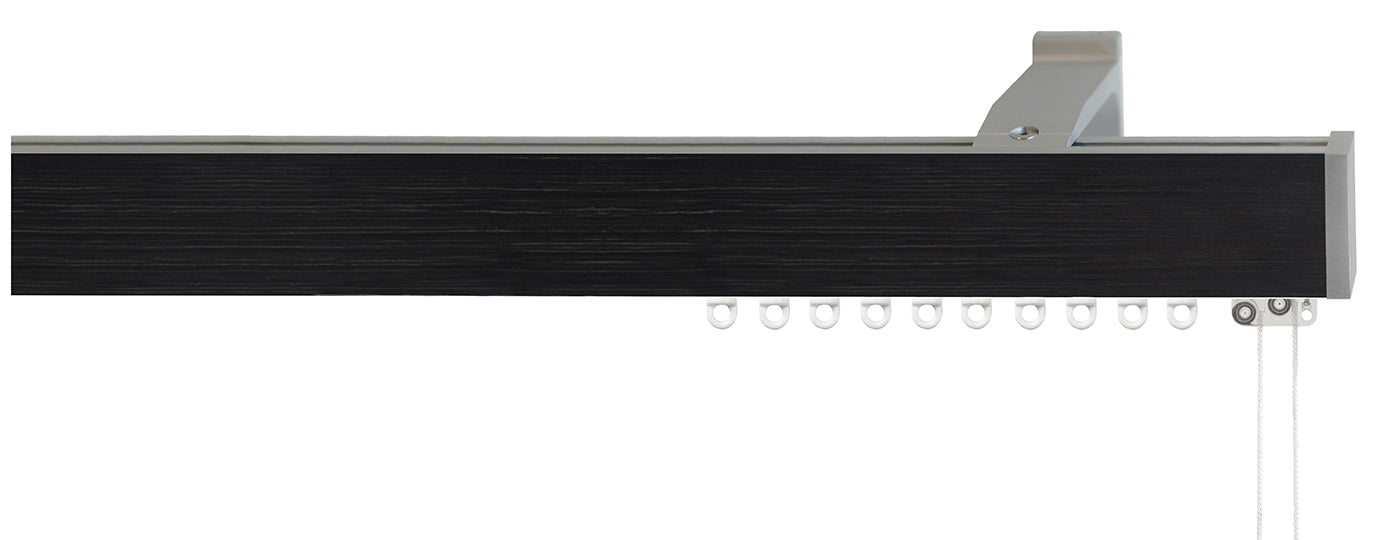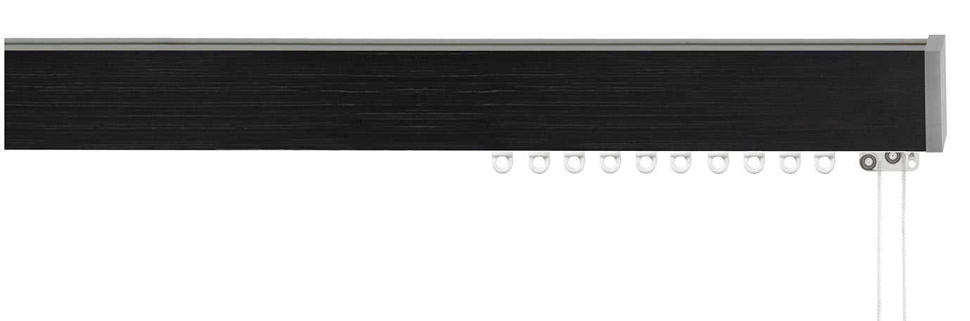 Jones Sencillo 40mm Cord Drawn Curtain Track Pole in Black with Wall fix or Ceiling fix brackets and Standard Gliders.