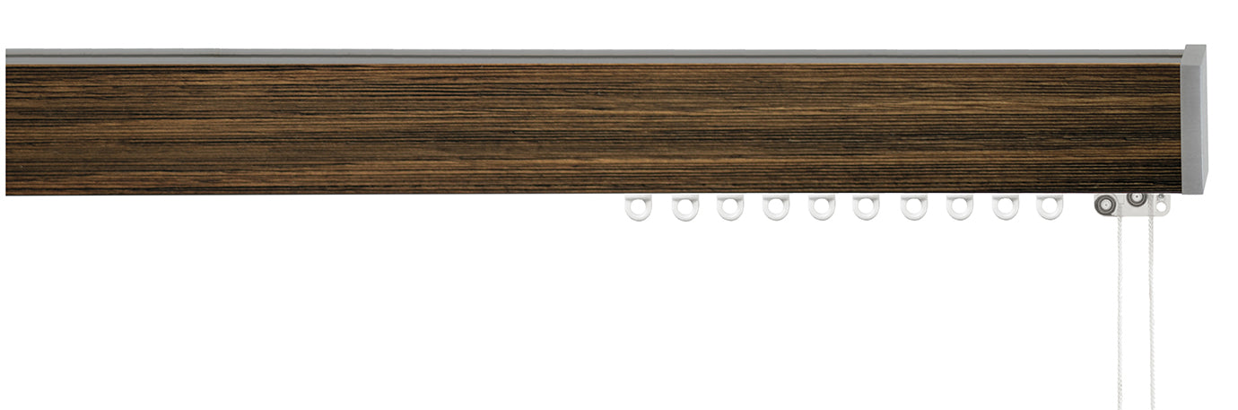 Jones Sencillo 40mm Cord Drawn Curtain Track Pole in Light Oak with Wall fix or Ceiling fix brackets and Standard Gliders.