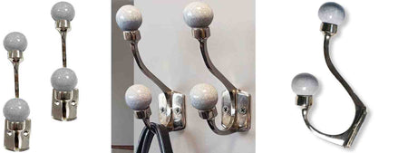 Laura Ashley Bertie Double Hook Dove Grey. Crafted from metal with crackle glaze ceramic detail, these Laura