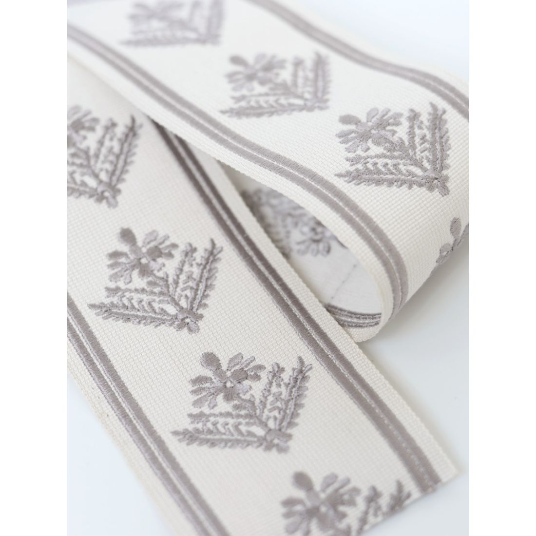 Laura Ashley Borders Lady Fern Steel Trimming. Lady Fern is a delightful design from the Heritage-inspired collection. It features elegant, filigree-like leaves and delicate flowers. The design is accentuated by a bold double stripe that outlines its edges, creating a strong botanical vibe and evoking a powerful sense of nature.
