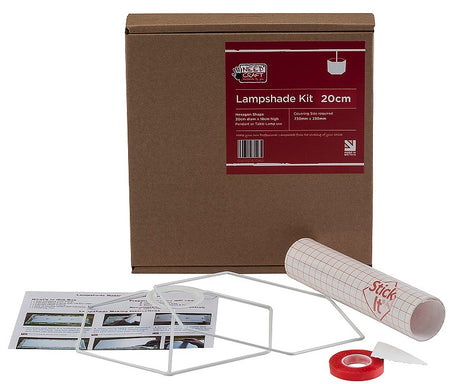 Needcraft 20cm Hexaganol Lampshade Kit from Hallis Hudson. The kits include components needed to create a professional lampshade, all you need to do is add your own fabric. The kit include 2 x Lampshade Rings, 1 x Self-Adhesive Lampshade Panel, 1 x Roll of Self-Adhesive Panel, 1 x Roll of Self-Adhesive Tape, 1 x Rolled Edge Tool & Instructions.