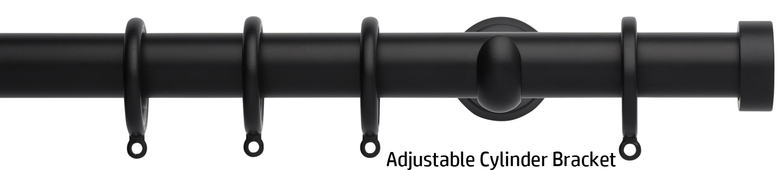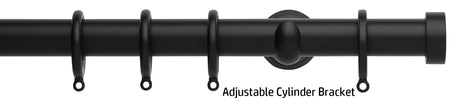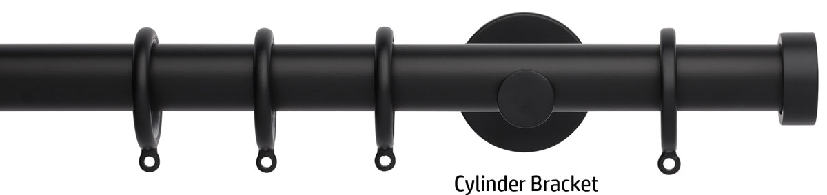 Neo 28mm metal curtain pole in a Matt Black finish with Endcap finials. A stunning, modern metal curtain pole with stylish brackets complete with nylon lined curtain rings to ensure a quiet, smooth travel along the pole.