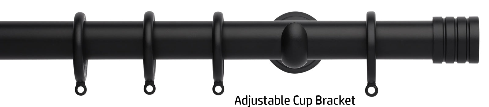 Neo 28mm metal curtain pole in a Matt Black finish with Stud finials. A stunning, modern metal curtain pole with stylish brackets complete with nylon lined curtain rings to ensure a quiet, smooth travel along the pole.