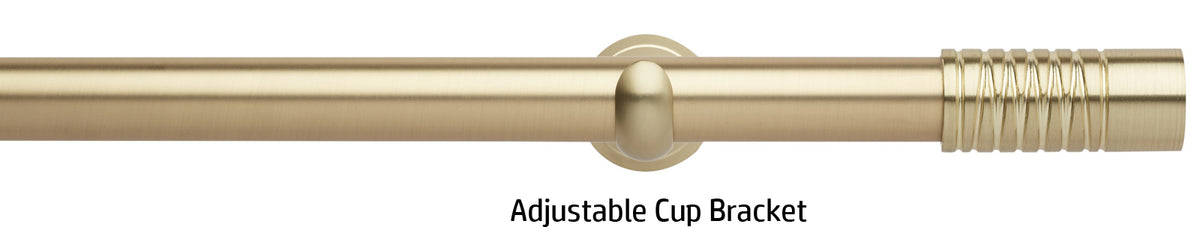 Neo 28mm metal eyelet curtain pole in a Gold finish with Wired Barrel finials. A stunning, modern metal curtain pole with stylish brackets complete with nylon lined curtain rings to ensure a quiet, smooth travel along the pole.