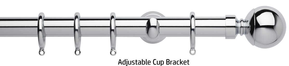 Neo 28mm Curtain Pole, Chrome, Ball Finial