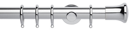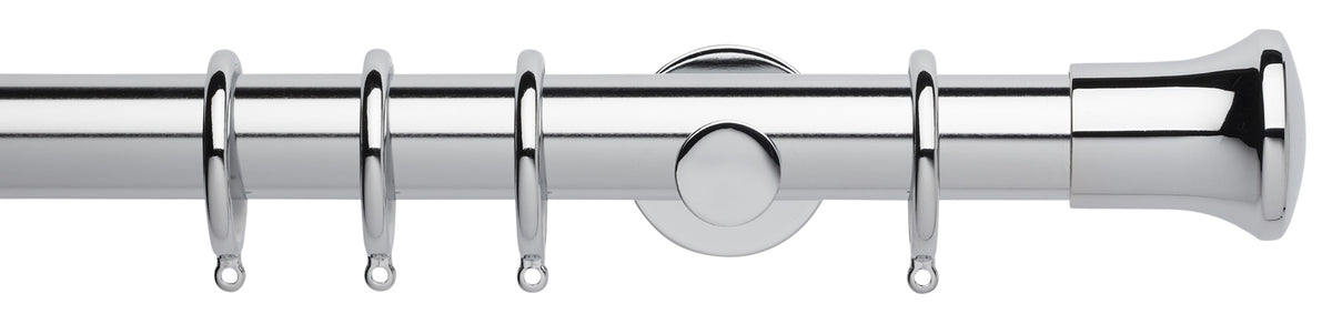 Rolls Neo by Hallis Hudson, a 35mm Metal Curtain Pole in a Chrome effect finish with a Trumpet finial. A stunning contemporary metal curtain pole with a stylish minimalistic look.