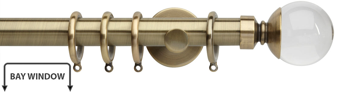 Neo Premium 28mm Bay Window Pole Spun Brass Clear Ball