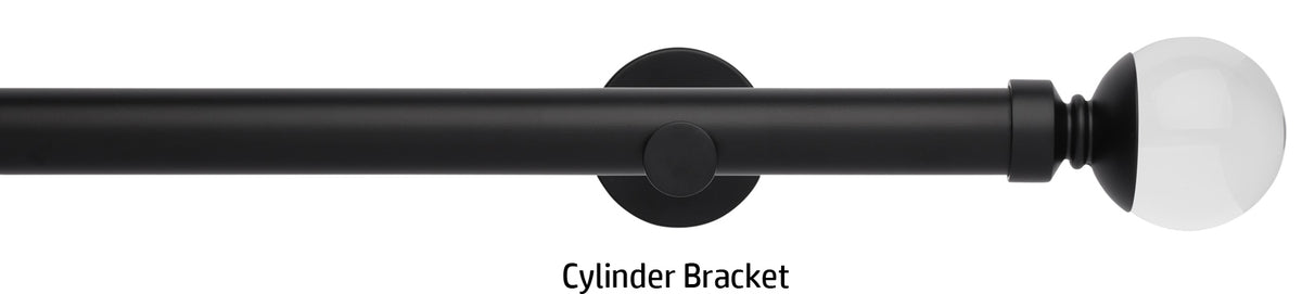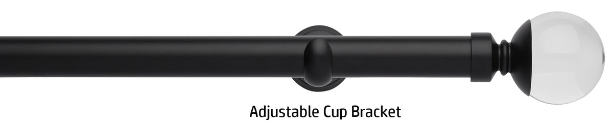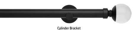 Rolls Neo Premium 28mm Eyelet Curtain Pole in a Matt Black effect finish with Clear Ball finials and supplied with stylish cylinder brackets or adjustable cup brackets. A stunning addition to the ever popular Rolls Neo collection of contemporary metal curtain poles with a stylish, minimalistic look. The clear finials are solid lead crystal with a metal collar to combine with the existing Neo metal finishes. The Neo Premium finials are the ultimate expression of refined luxury.