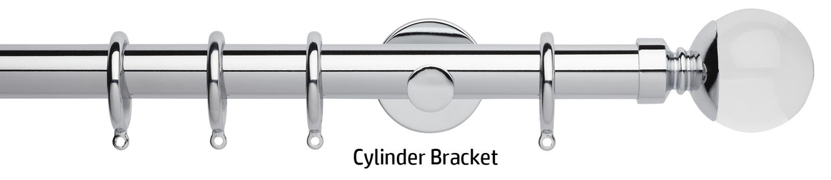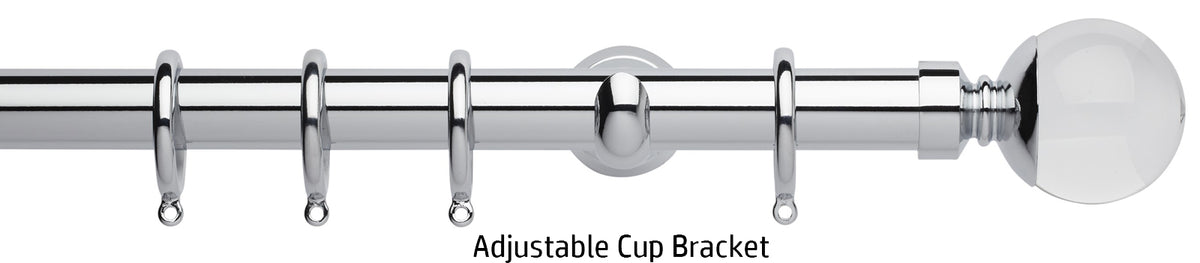 Rolls Neo Premium 28mm Metal Curtain Pole in a Chrome effect finish with Clear Ball finials, available with a choice of stylish cylinder brackets or adjustable cup brackets. A stunning addition to the ever popular Rolls Neo collection of contemporary metal curtain poles with a stunning yet minimalistic look. The clear finials are solid lead crystal with a metal collar to combine with the existing Neo metal finishes. The Neo Premium finials are the ultimate expression of refined luxury.