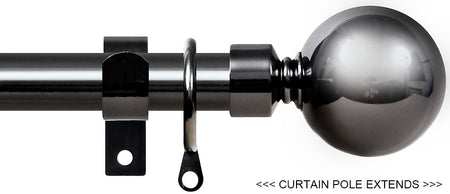 Renaissance 19/16mm Extensis Extendable Curtain Pole Black Nickel, Ball