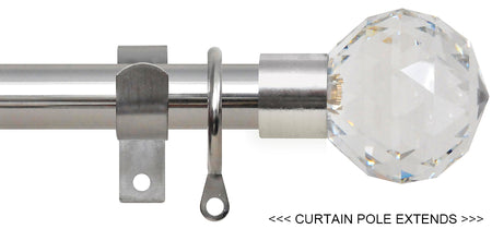 Renaissance 16/19mm Extensis Extendable Curtain Pole in Brushed Nickel with Clear Crystal Cut Diamond finials.  A traditional extending curtain pole with contemporary finials.