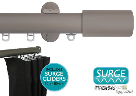 Renaissance 28mm Distinction Surge Metal Curtain Pole Light Grey, Barrel