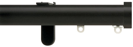 Silent Gliss Metropole 30mm in a Black effect finish with Stud Endcap finials, Hand Operated. The Metropole 7610 is a stylish, hand operated contemporary curtain pole set made from aluminium. The Metropole functions like a curtain track but has the appearance of a curtain pole. The pole features nylon gliders that run in siliconised aluminium channels unhindered by brackets or rings.