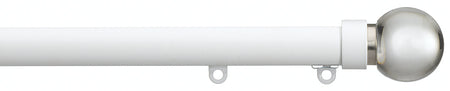 Silent Gliss Metropole 30mm in a White effect finish with Clear Ball finials, Hand Operated. The Metropole 7610 is a stylish, hand operated contemporary curtain pole set made from aluminium. The Metropole functions like a curtain track but has the appearance of a curtain pole. The pole features nylon gliders that run in siliconised aluminium channels unhindered by brackets or rings.