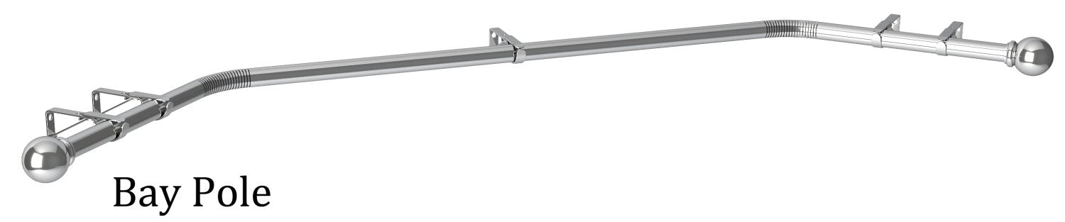 Speedy 28mm Eyelet Bay Curtain Pole in Chrome. A stunning contemporary metal curtain pole with a stylish minimalistic look. The Speedy eyelet bay window curtain pole set is a superb bay window solution for use with eyelet curtains, allowing full curtain flow around the bay. This bay pole features a unique bending system. The poles are pre-cut to allow bending by hand for all shapes of bay windows.