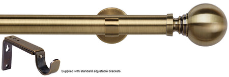 Speedy 35mm Eyelet Standard Curtain Pole in Antique Brass with standard, adjustable brackets and Globe finials. The Speedy 35mm collection of metal curtain poles hosts a wide range of contemporary finials. The curtain pole sets are supplied complete with the standard, adjustable fixing brackets.