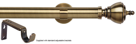 Speedy 35mm Eyelet Standard Curtain Pole in Antique Brass with standard, adjustable brackets and Vienna finials. The Speedy 35mm collection of metal curtain poles hosts a wide range of contemporary finials. The curtain pole sets are supplied complete with the standard, adjustable fixing brackets.